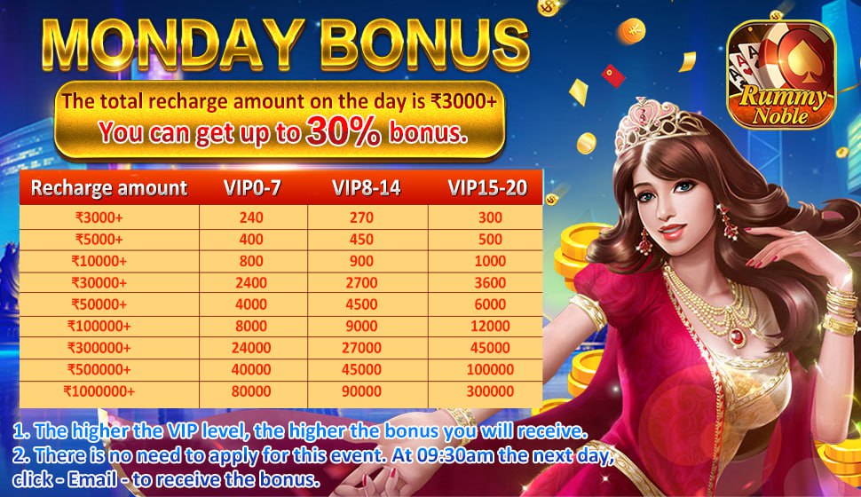 7. **Weekly Deposit Bonus Event**: Rummy Noble launches a weekly deposit bonus event every Monday.